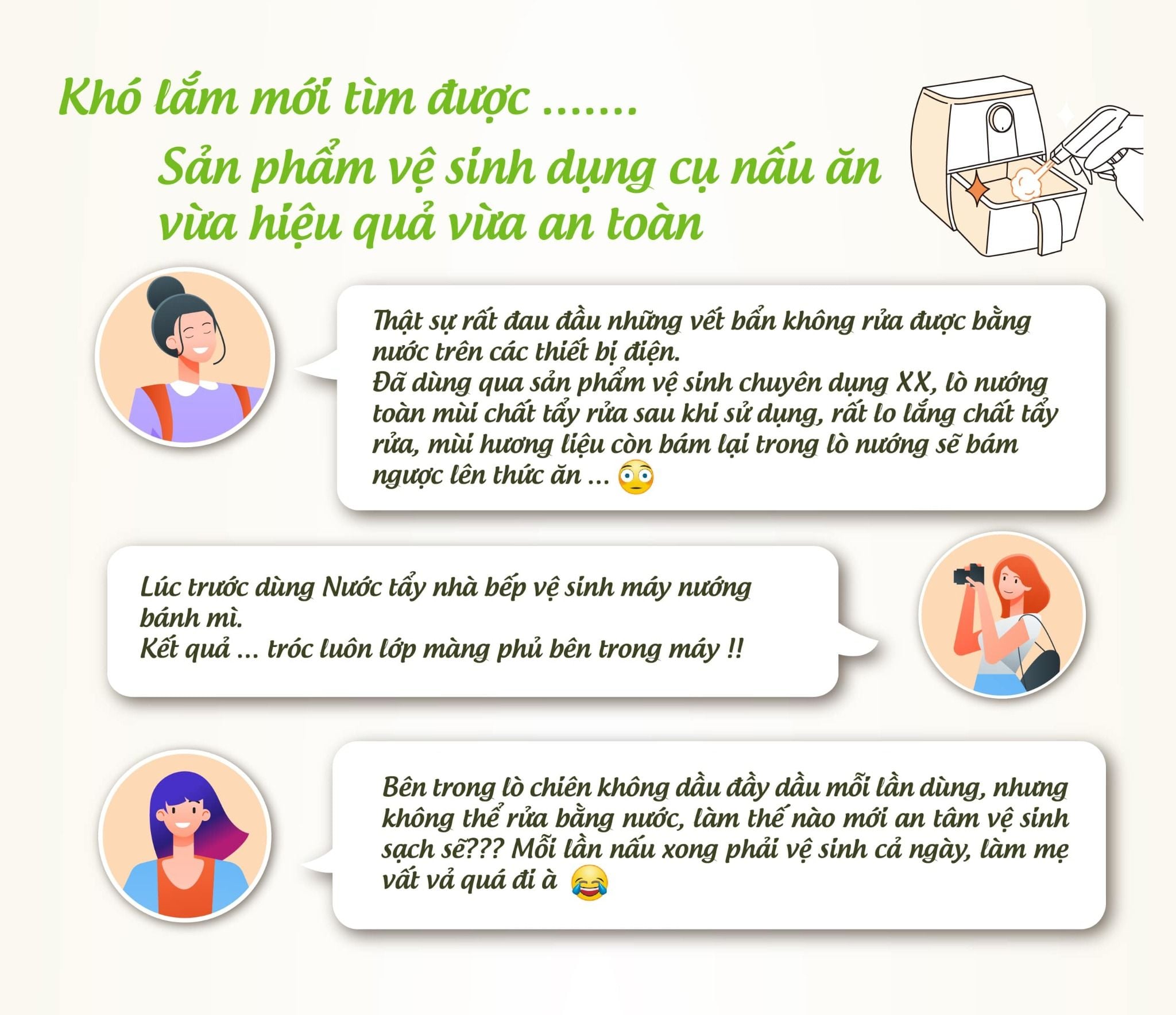 Làm sạch vết cháy khét, vết dầu mỡ, vết thức ăn bên trong lò chiên không dầu, lò nướng, lò vi sóng, máy nướng bánh