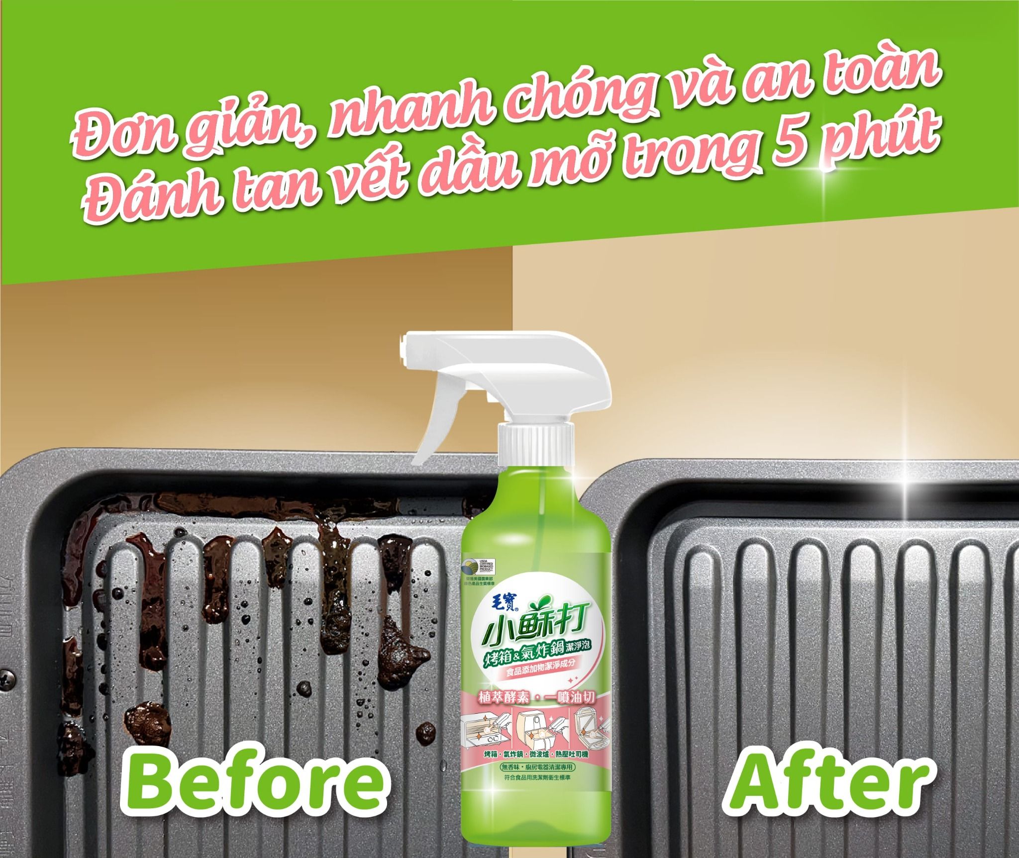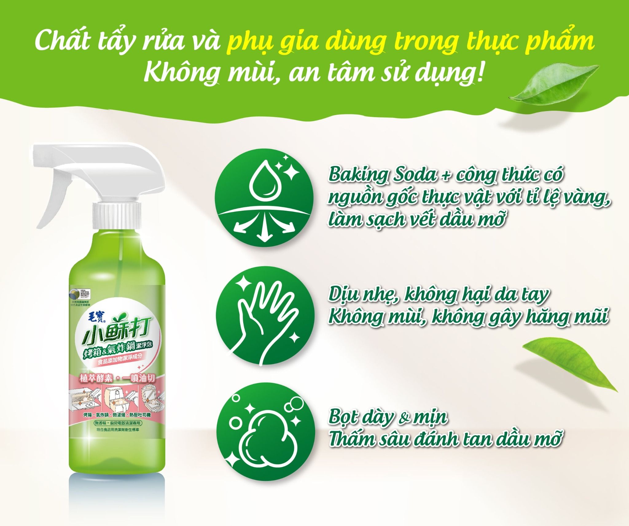 Thành phần làm sạch có nguồn gốc thực vật, an tâm làm sạch các thiết bị nấu ăn