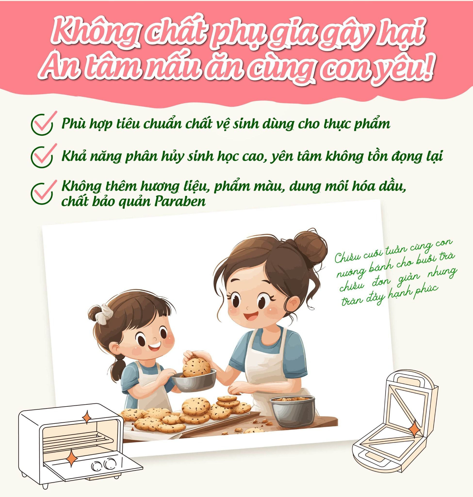 Các thiết bị nấu nướng như lò nướng, lò chiên không dầu, lò vi sóng, máy ép bánh, các linh kiện thiết bị điện tử có thể rửa bằng nước, mặt trong mặt ngoài các thiết bị điện tử gia dụng.