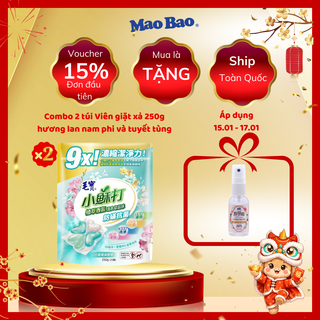 SKU:E53023010VCombo 2 Túi (25 Viên x 10g) Giặt Xả Mao Bao Chống Mạt Hương Lan Nam Phi và Tuyết Tùng, Lưu Hương Bền Lâu