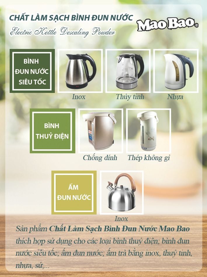 - Bình, ấm đun nước của bạn sẽ trở nên sáng bóng, không sợ bám cặn bẩn.